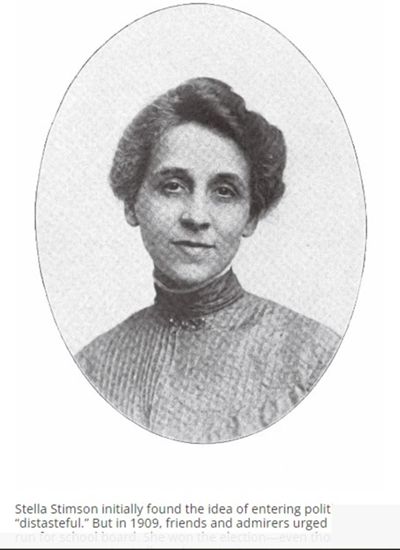 Stella Courtright Stimson was elected to the Terre Haute, Indiana school board in 1909. She was one of three women candidates, and the only one who won a seat. Stimson was an active club woman. In 1913 and 1914, she and other reforming wom…
